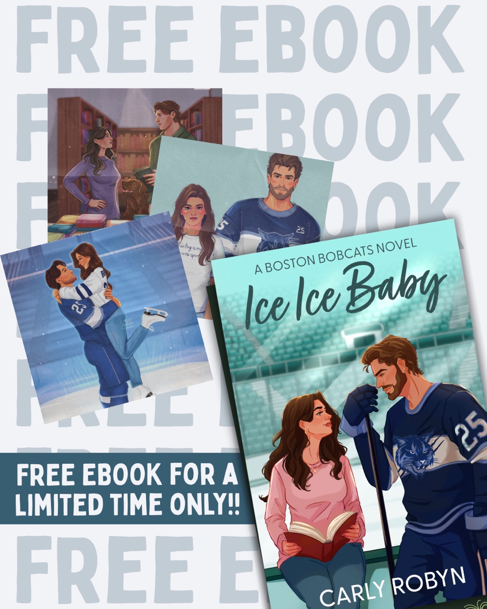 Ice Ice Baby by Carly Robyn is FREE for a limited time! Download today for FREE! #BostonBobcats #SportsRomance #HockeyRomance #HeFallsFirst #Valentineprlm |